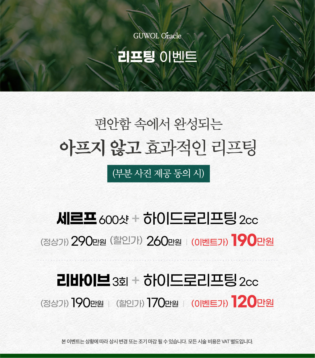 - 모든 시술은 VAT 별도입니다. -