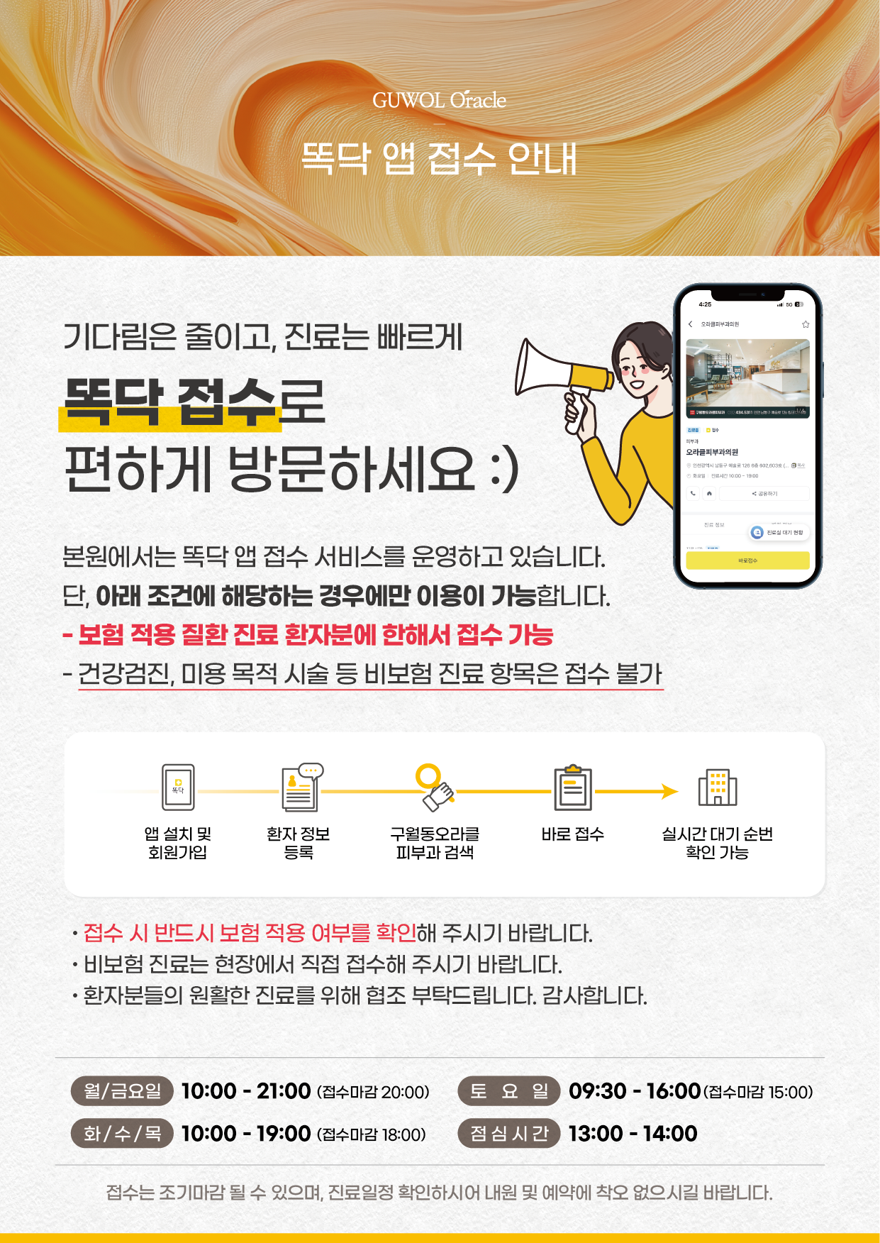 건강검진, 미용 목적 시술 등 비보험 진료 항목은 접수 불가합니다.
